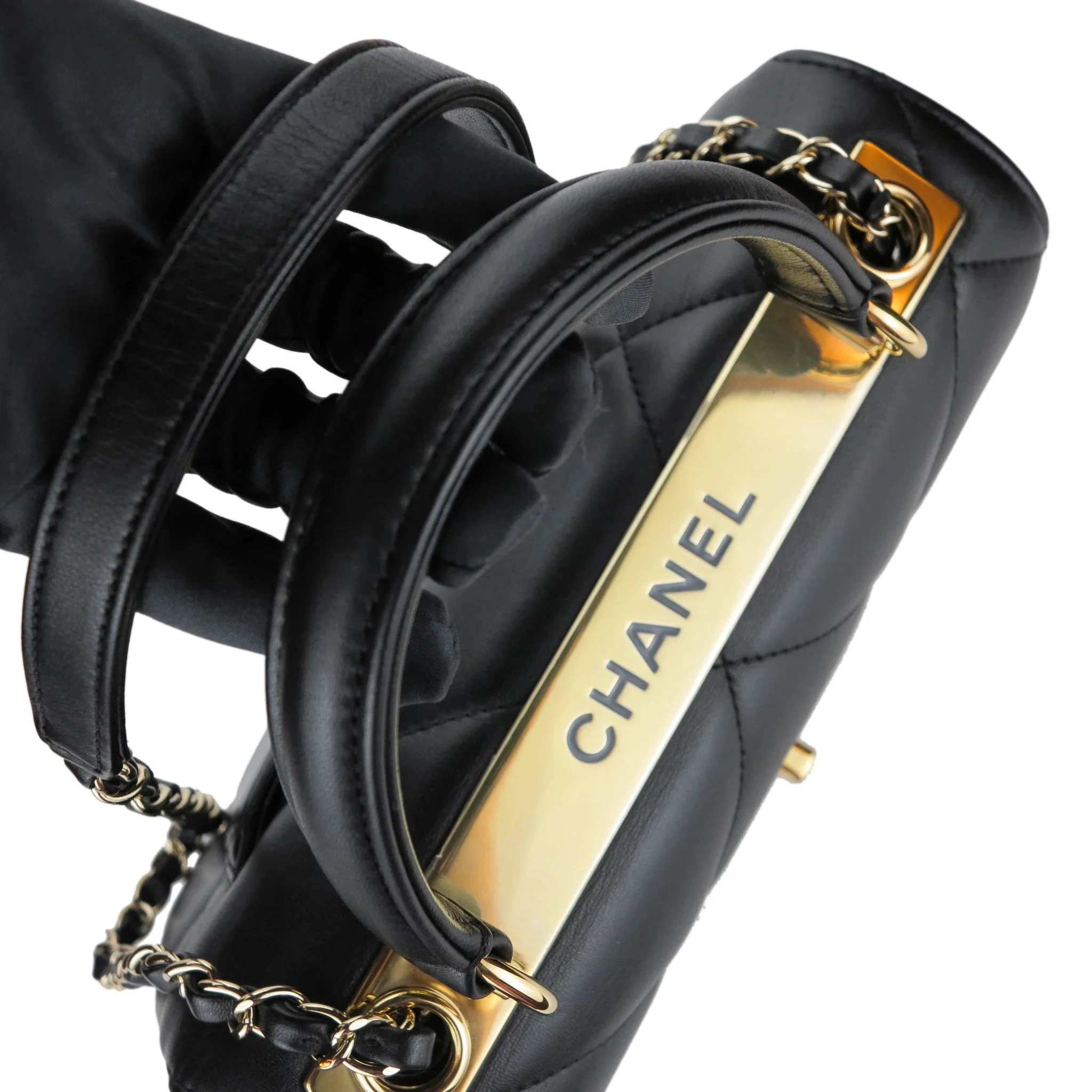 CHANEL BLACK FLAP HANDBAG WITH TOP HANDLE