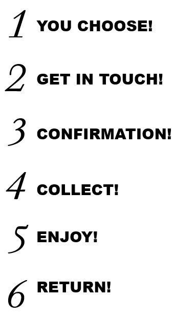 2. Contact us via the form and let us know which bag you would like to rent, the start date of your rental and for how many days, along with the collection and return time, which will usually be the same unless specifically requested.